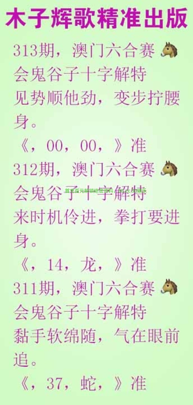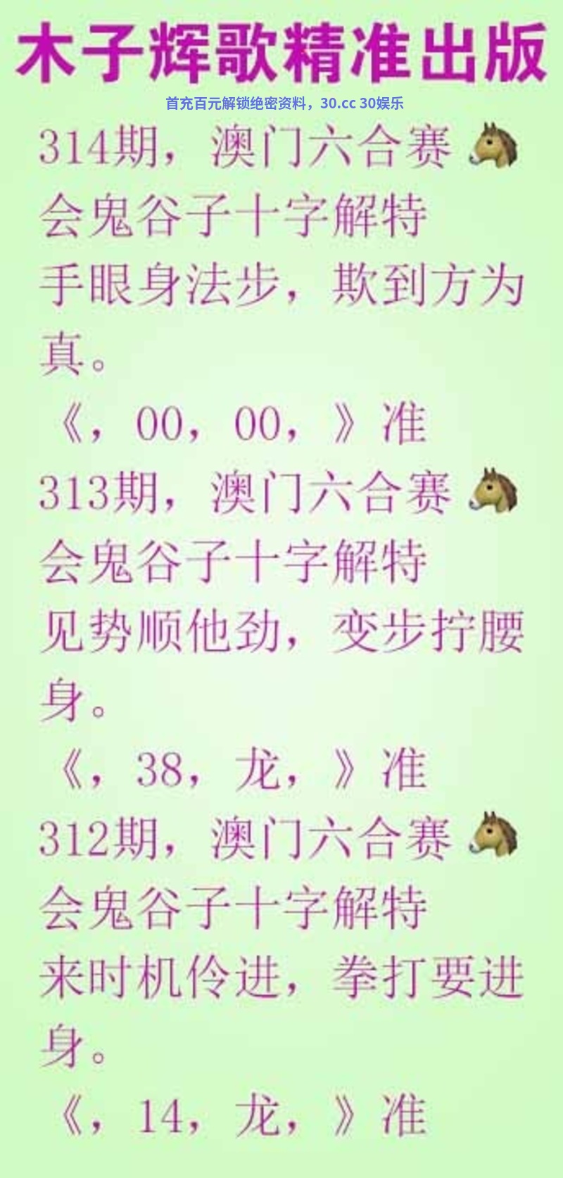 312期:♣天地中特♣天天天♣开:龙14中 313期:♣天地中特♣天天天♣开:龙38中 314期:♣天地中特♣地地地♣开:羊23中 315期:♣天地中特♣天天天♣开:發00中 天肖:牛猪猴马龙兔 💥 地肖:虎鼠狗鸡羊蛇 庄家怕了,密料大放送!(9715888.com) 澳门木子辉歌《五段中特》9715888.com